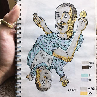 This is a set of playing cards satirizing materialism. The amount of money depicted increases with the card’s rank, and the expressions on the characters’ faces change accordingly. The Joker cards are an exception.